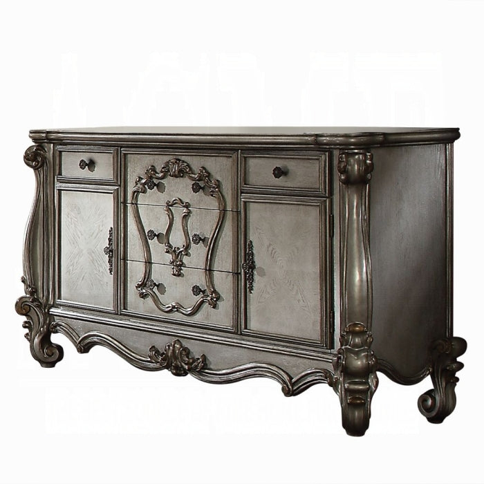 Versailles Dresser is a timeless storage piece that brings elegant sophistication to any bedroom. Crafted for daily use, it combines a classic silhouette with a durable antique platinum finish. Ideal for master suites, guest rooms, or dressing areas, this dresser offers generous storage and refined styling.