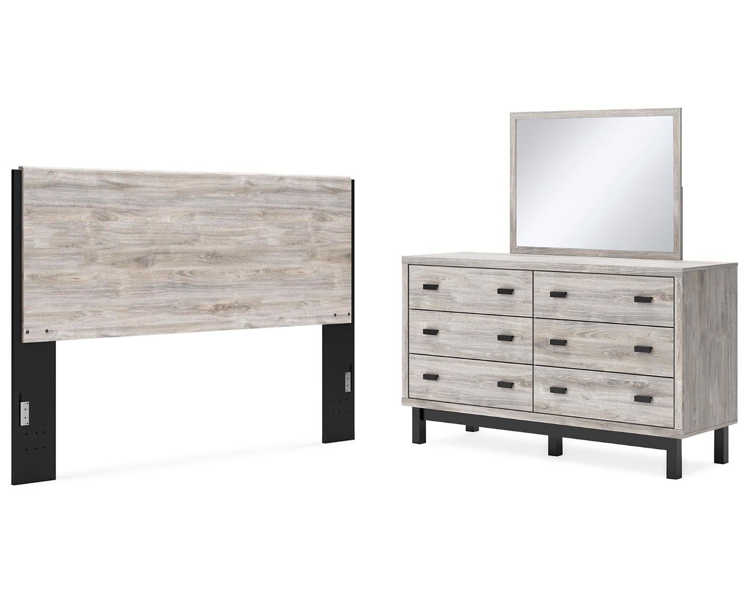 Vessalli King Panel Headboard, Dresser and Mirror – Gray
