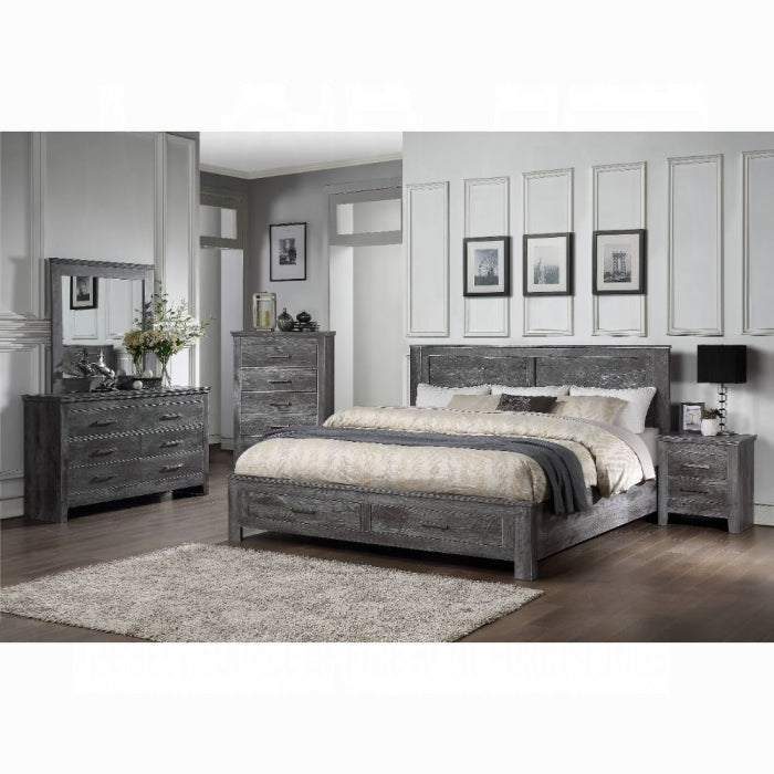 The Vidalia bedroom collection embraces rugged simplicity with a touch of natural charm. This queen bed brings together sturdy wood construction, rough sawn plank panels, and a rustic gray oak finish to create a warm, enduring centerpiece for any bedroom. The built-in storage drawers offer practical space without compromising style.