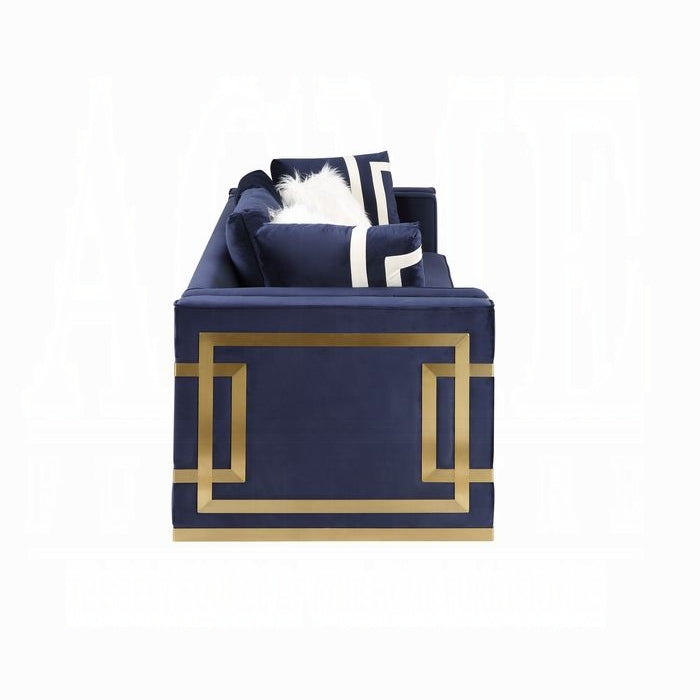 Meet the Virrux Loveseat, a modern seating solution designed for living spaces that value harmony, balance, and visual comfort. This piece is part of the Virrux Living Room Collection, combining geometric accents with a minimalist aesthetic to create depth and visual interest. A minimalist gold metal trim highlights a high-end look that stays simple and contemporary, while four included pillows enhance comfort and style.