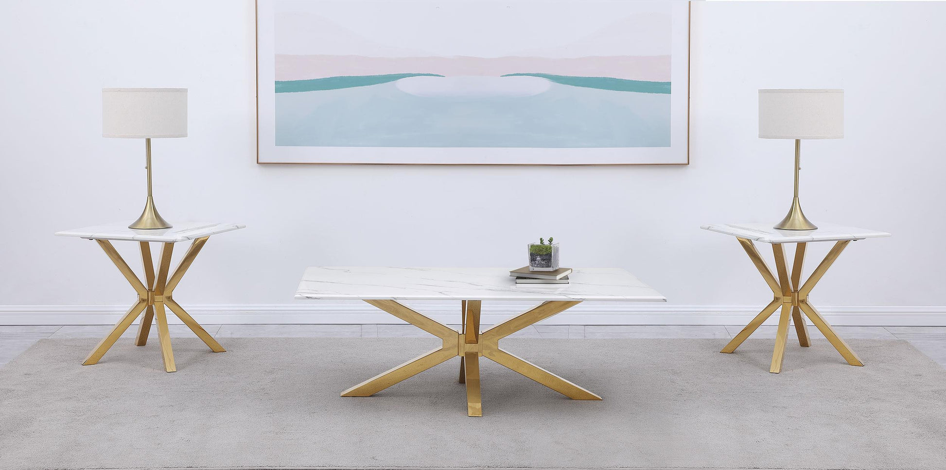 Meet the Visalia 3-piece Faux Marble Coffee and End Table Set in White — a chic, practical trio for modern living rooms. This set is ideal for those seeking a clean, bright look with functional surfaces for coffee, remotes, books, and decor. With faux marble tops and a minimalist silhouette, it blends style with everyday usability.