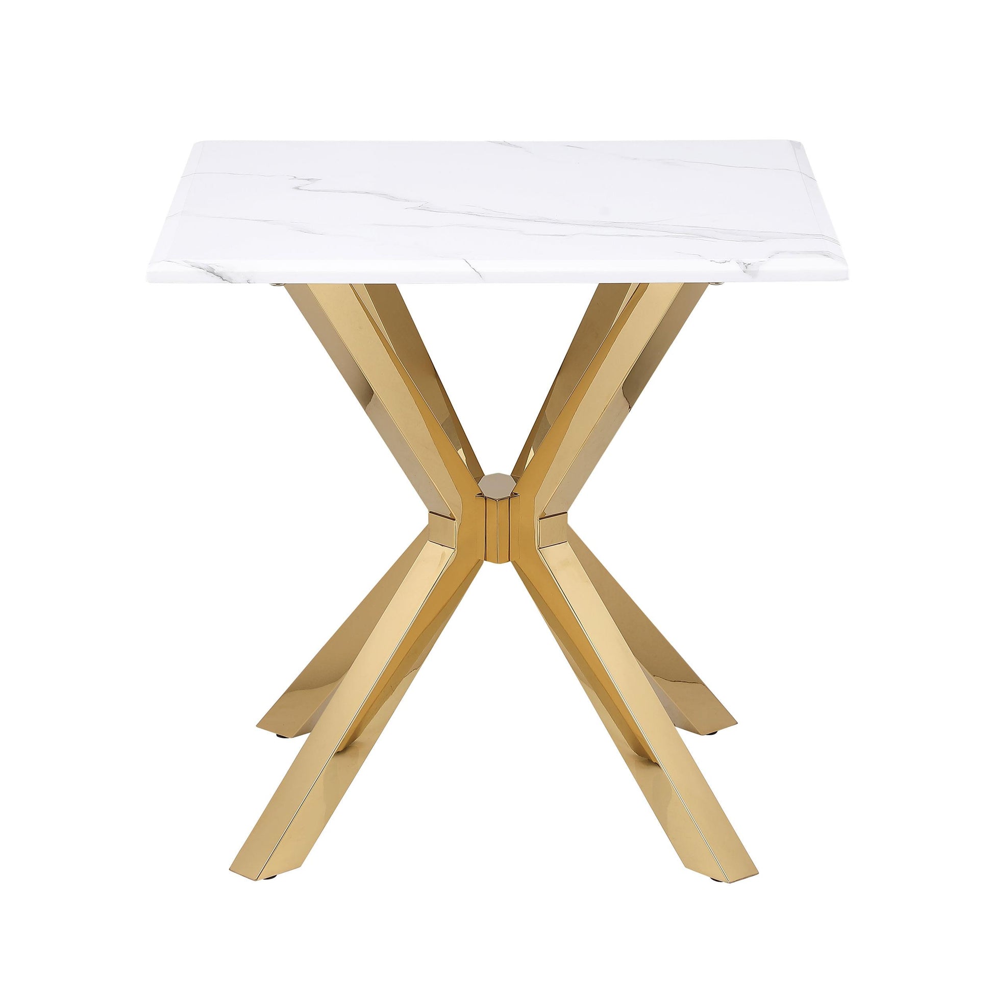 Visalia Faux Marble Top Stainless Steel End Table Gold
