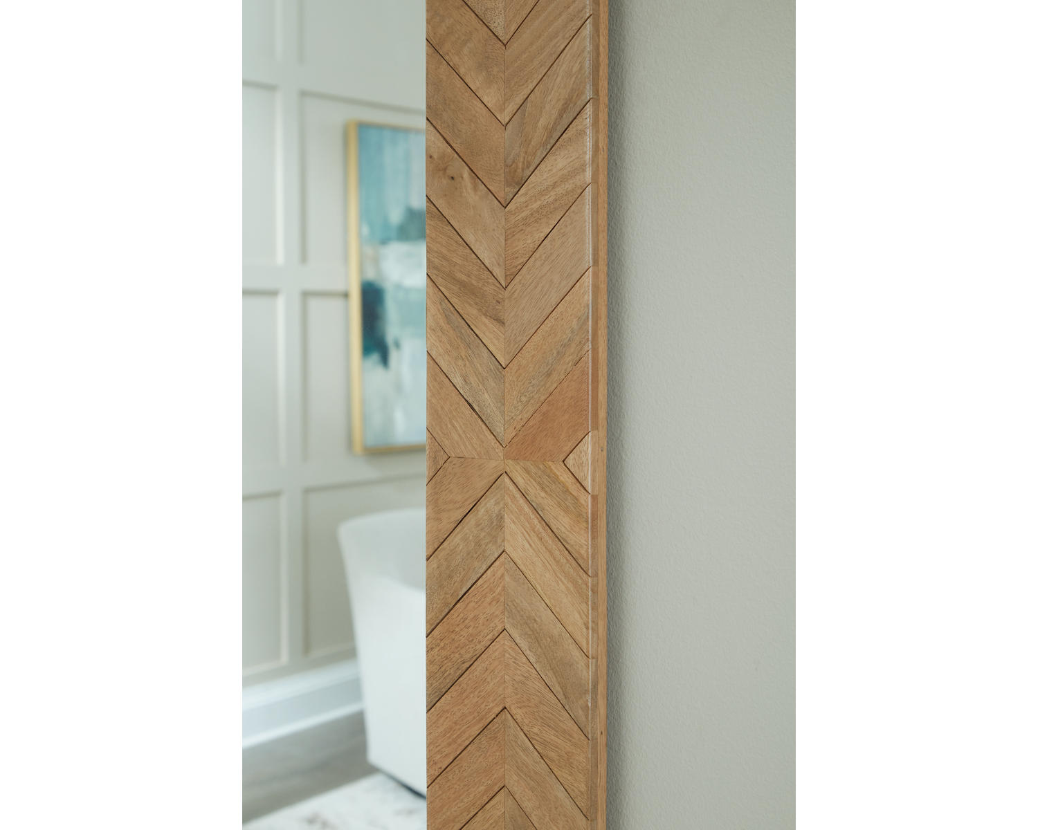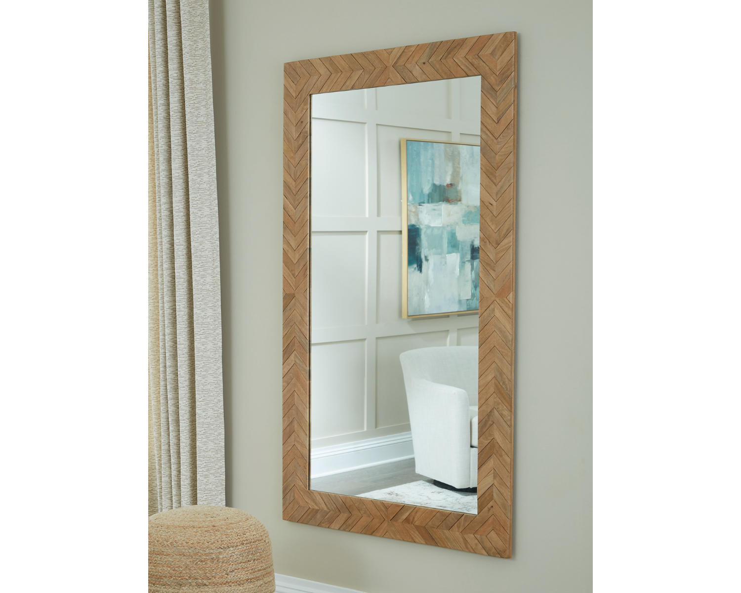 The Waylane Floor Mirror in a warm brown finish brings light, depth, and a touch of modern elegance to any room. This floor-style mirror is ideal for bedrooms, entryways, or living spaces where style meets everyday practicality. Its clean silhouette and versatile color make it a timeless addition to a wide range of decor styles.