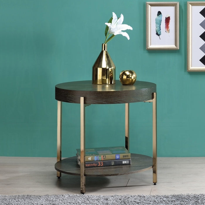 Meet the Weyton End Table, a compact, stylish accent piece designed for living rooms, bedrooms, or entryways. With a light brown wood finish paired with champagne-toned metal, it adds a modern touch without overpowering your space. The 25"W x 25"D surface and 23"H height provide a versatile surface for lamps, beverages, or display items.