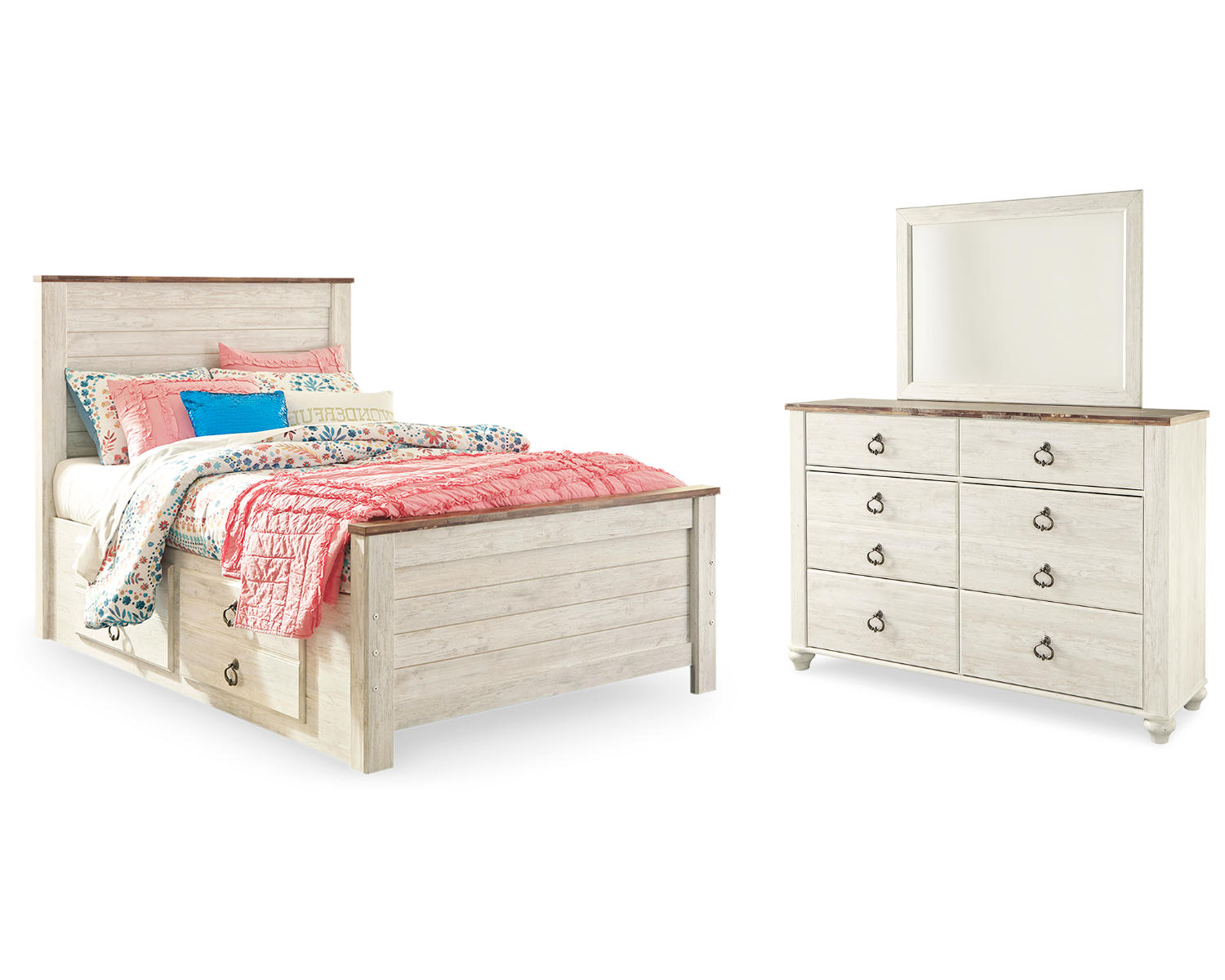 Willowton Full Panel Bed with Storage, Dresser and Mirror