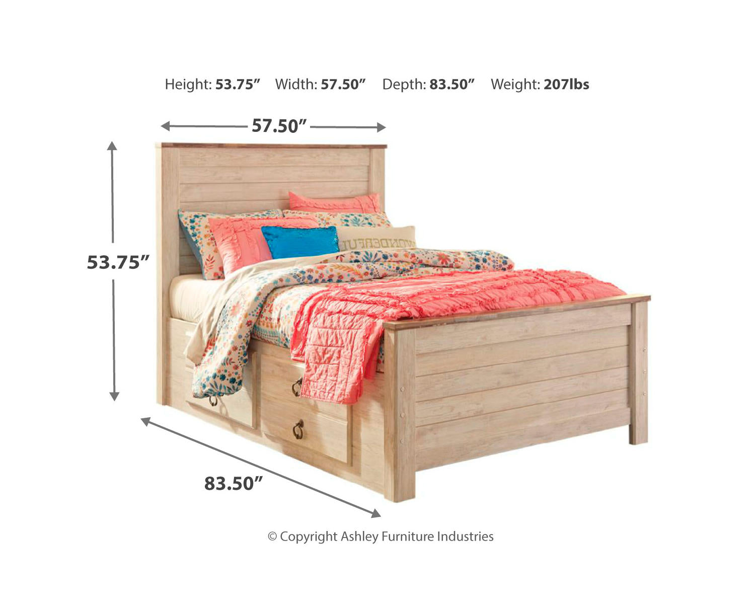 The Willowton set is built to endure daily use with a stable frame and durable finish. The whitewash tone offers a versatile look that stays relevant as your space evolves. Because the bed, storage, dresser, and mirror are packaged together, you may enjoy a streamlined purchasing experience and potential cost savings compared with buying each piece separately—without compromising style or function.