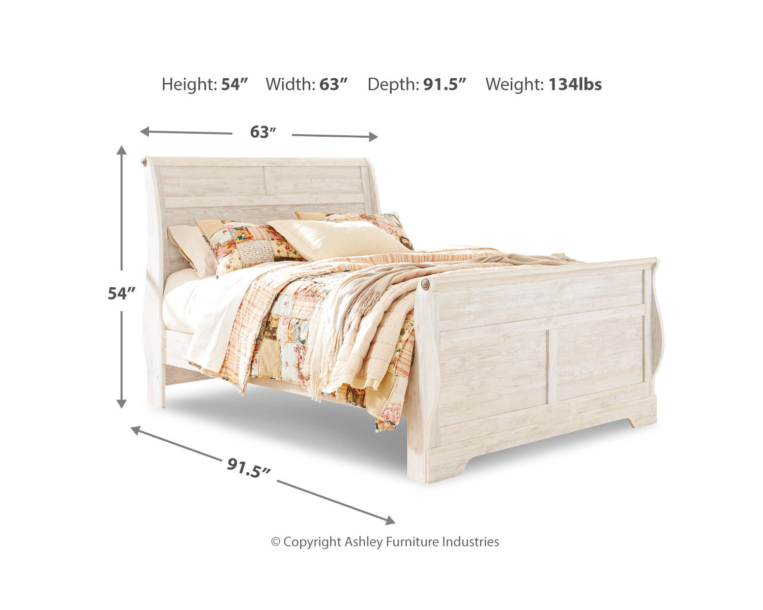 Experience timeless charm with the Willowton Queen Sleigh Bed, finished in a soft whitewash. This bed is designed for bedrooms that want a calm, airy feel with an elegant silhouette. Perfect for master suites or guest rooms, it pairs with a variety of decors and bedding styles. It supports a queen mattress and serves as a durable centerpiece you’ll love for years.