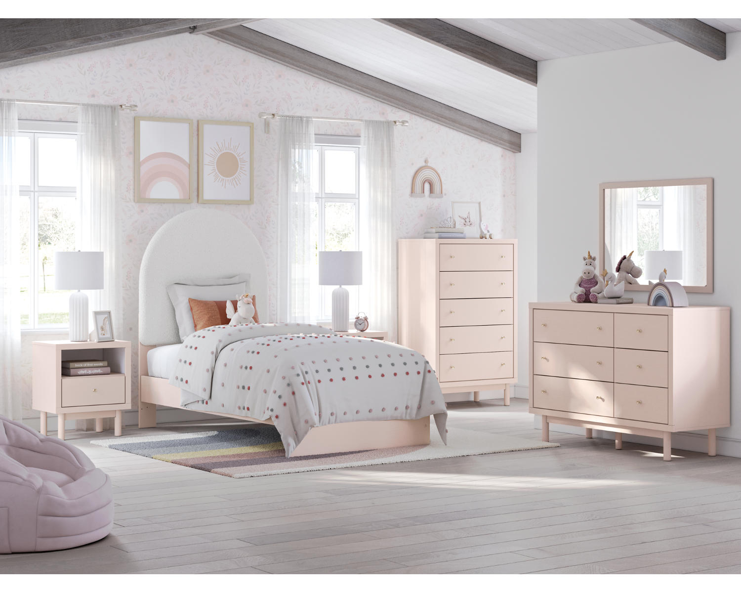 Introducing the Wistenpine Dresser and Mirror in blush — a stylish and practical bedroom essential designed for modern spaces. This coordinated pair blends soft color with clean lines to create a calm, inviting focal point in your room. It's ideal for anyone seeking organized storage without sacrificing aesthetics.