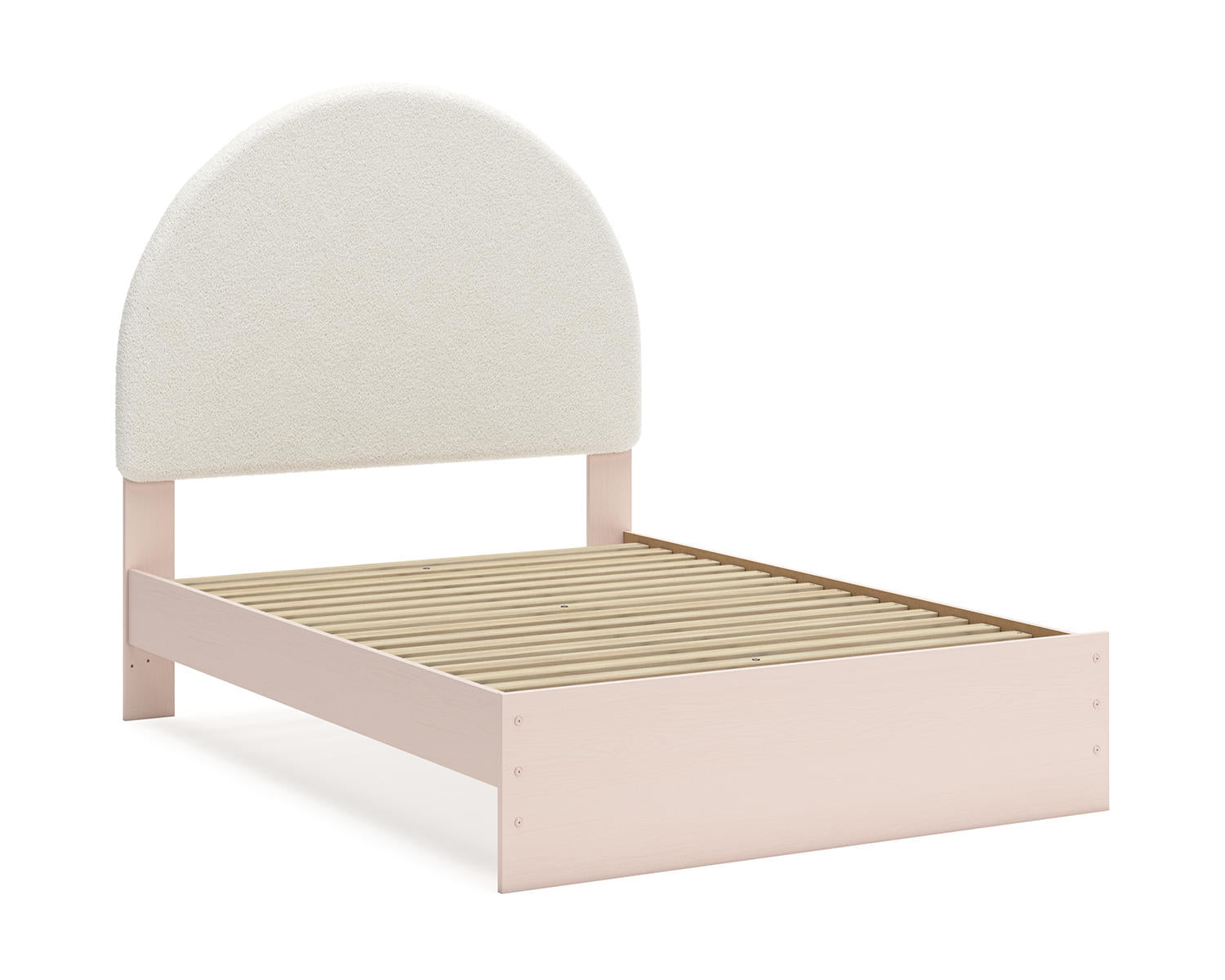 Wistenpine Full Upholstered Panel Bed, Dresser and Mirror — Blush