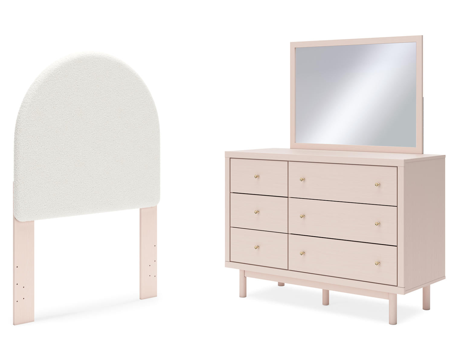 Create a cohesive, calming centerpiece for a twin-size bedroom with the Wistenpine Twin Upholstered Panel Headboard, Dresser and Mirror. This three-piece set pairs a plush upholstered headboard with a streamlined dresser and a matching mirror, designed for bedrooms where style meets everyday practicality. The soft blush tone adds warmth and a contemporary touch that fits a variety of décor styles.