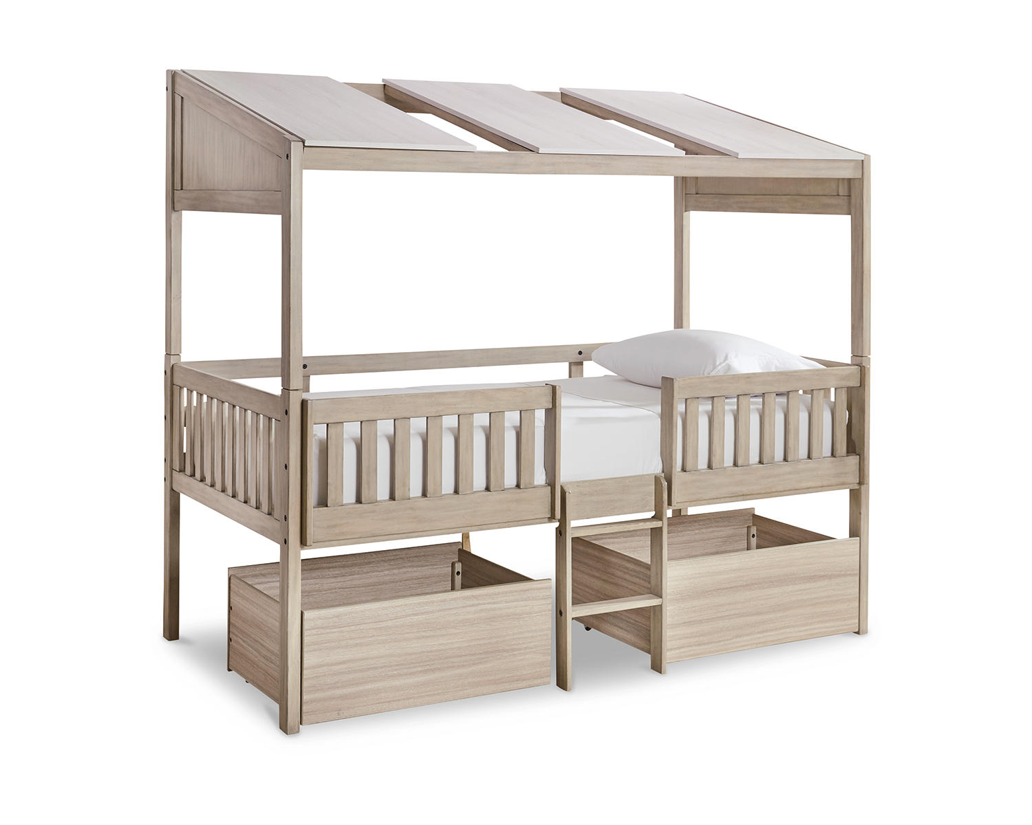 Wrenalyn Twin Loft Bed with Under Bed Bin Storage – Two-Tone