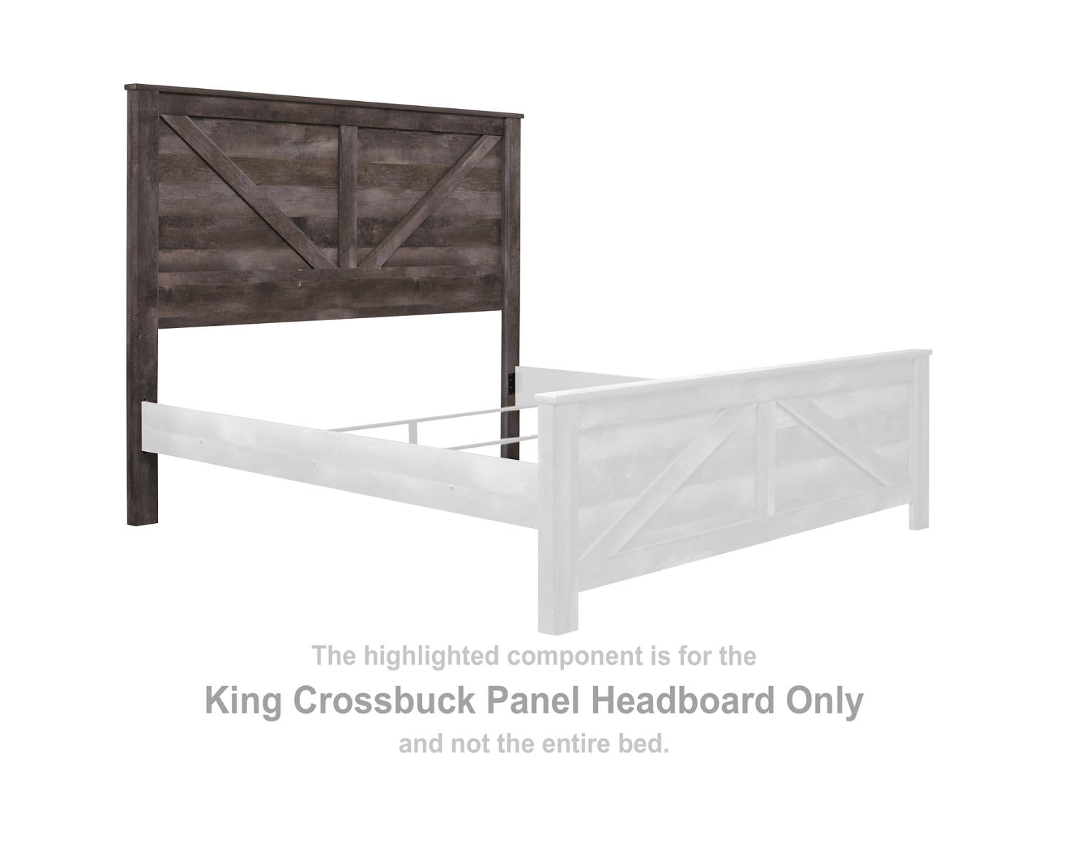 The Wynnlow King Crossbuck Panel Headboard brings a clean, architectural look to your bedroom with a gray, king-size silhouette. Designed for modern spaces, it pairs effortlessly with most king beds to create a timeless centerpiece. The crossbuck panel design adds subtle depth while maintaining a streamlined profile.