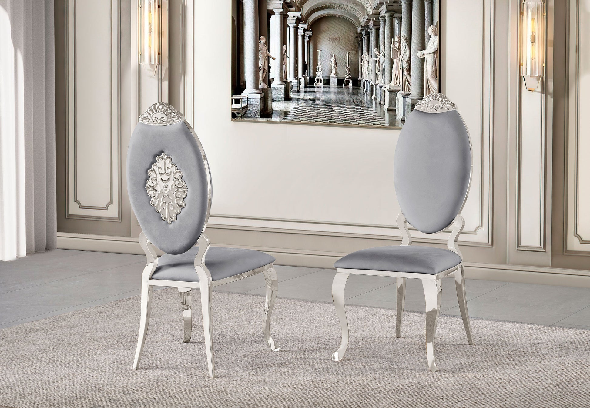 Elevate your dining room with the Yara Velvet Dining Chair. These elegant oval-back chairs pair luxurious black velvet upholstery with polished silver accents, delivering timeless sophistication for upscale spaces. Designed for both style and comfort, they make every meal feel refined.