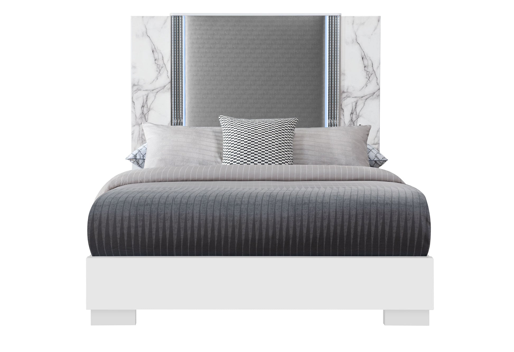 YLIME WHITE MARBLE QUEEN BED GROUP FULLY SLATTED