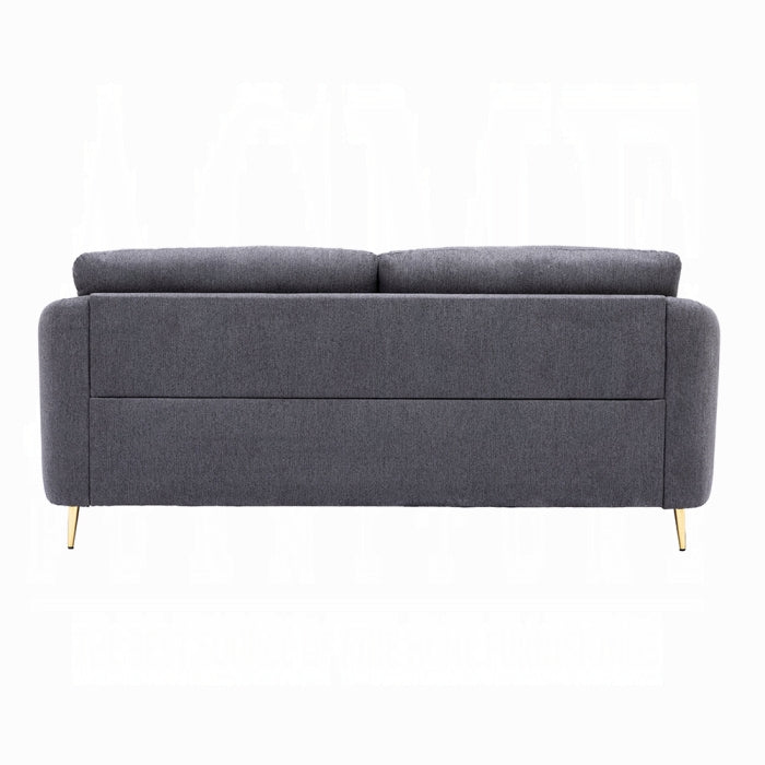 Introducing the Yuina sofa — a slightly rounded, sloped-arm silhouette built for modern living spaces. The neutral gray linen upholstery pairs with gold metal legs to create a clean, stylish look that’s easy to coordinate with your decor. Plush seat cushions invite you to sit back and unwind, making everyday lounging feel a touch more luxurious.