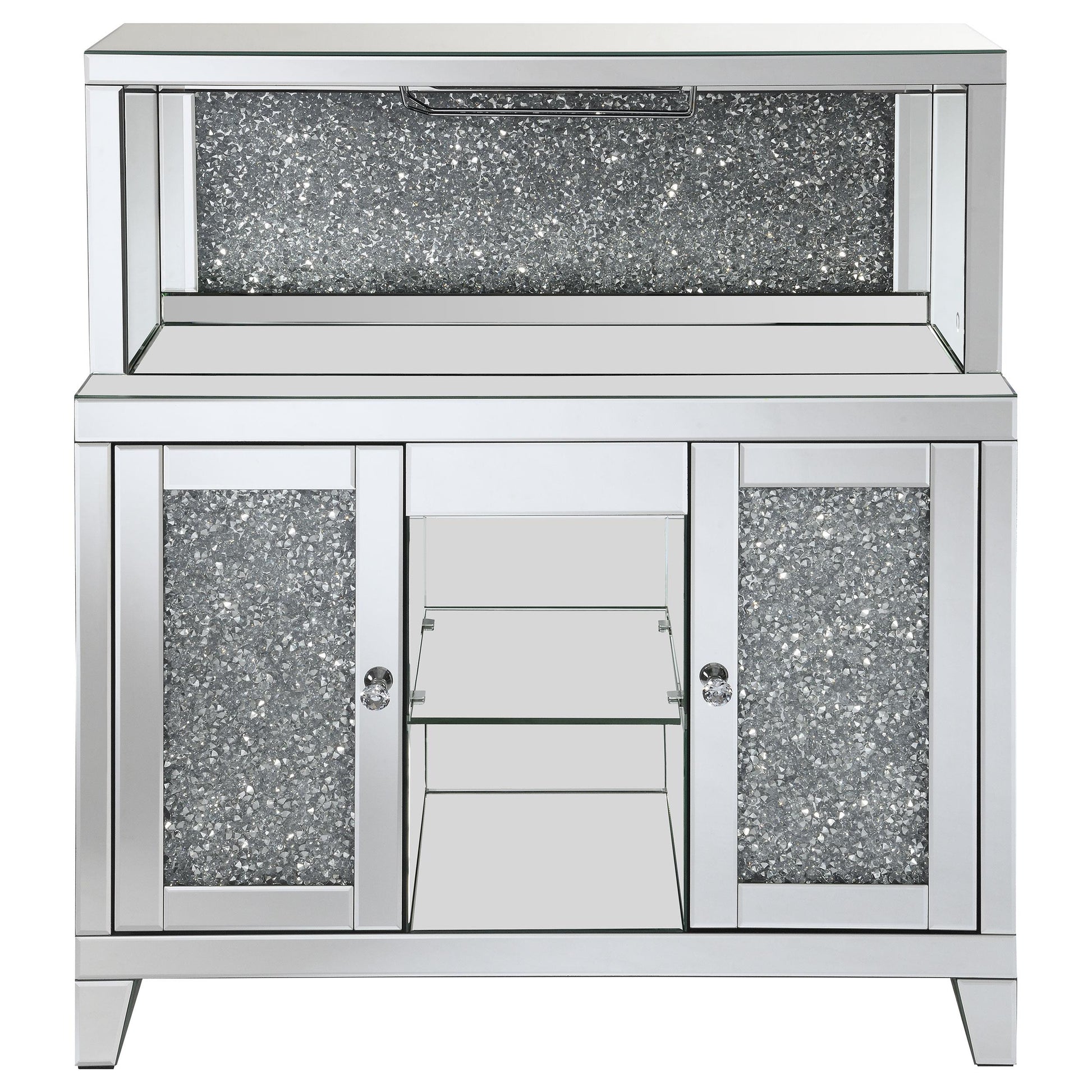 Meet the Yvaine 2-door Mirrored Acrylic Home Bar Wine Cabinet in Silver—a stylish, space-saving centerpiece for entertaining. It blends reflective surfaces with a sleek acrylic build to elevate any dining or living area. Ideal for small homes or open-plan spaces, it stores bottles and glassware with easy access and modern charm.