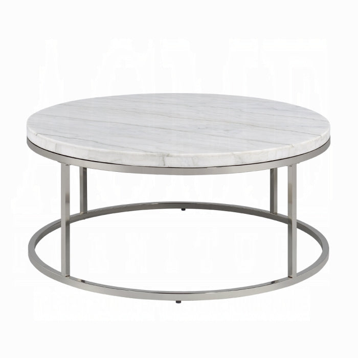 The Zaidee coffee table combines durability with timeless style. The marble top delivers a classic, high-end aesthetic, while the nickel-finished frame provides a clean, contemporary silhouette that complements a wide range of decor. With its substantial weight and solid construction, it remains stable under daily use and casual entertaining. This table offers strong value in a premium-looking package, making it a versatile centerpiece for living rooms, lounges, or open-plan spaces.