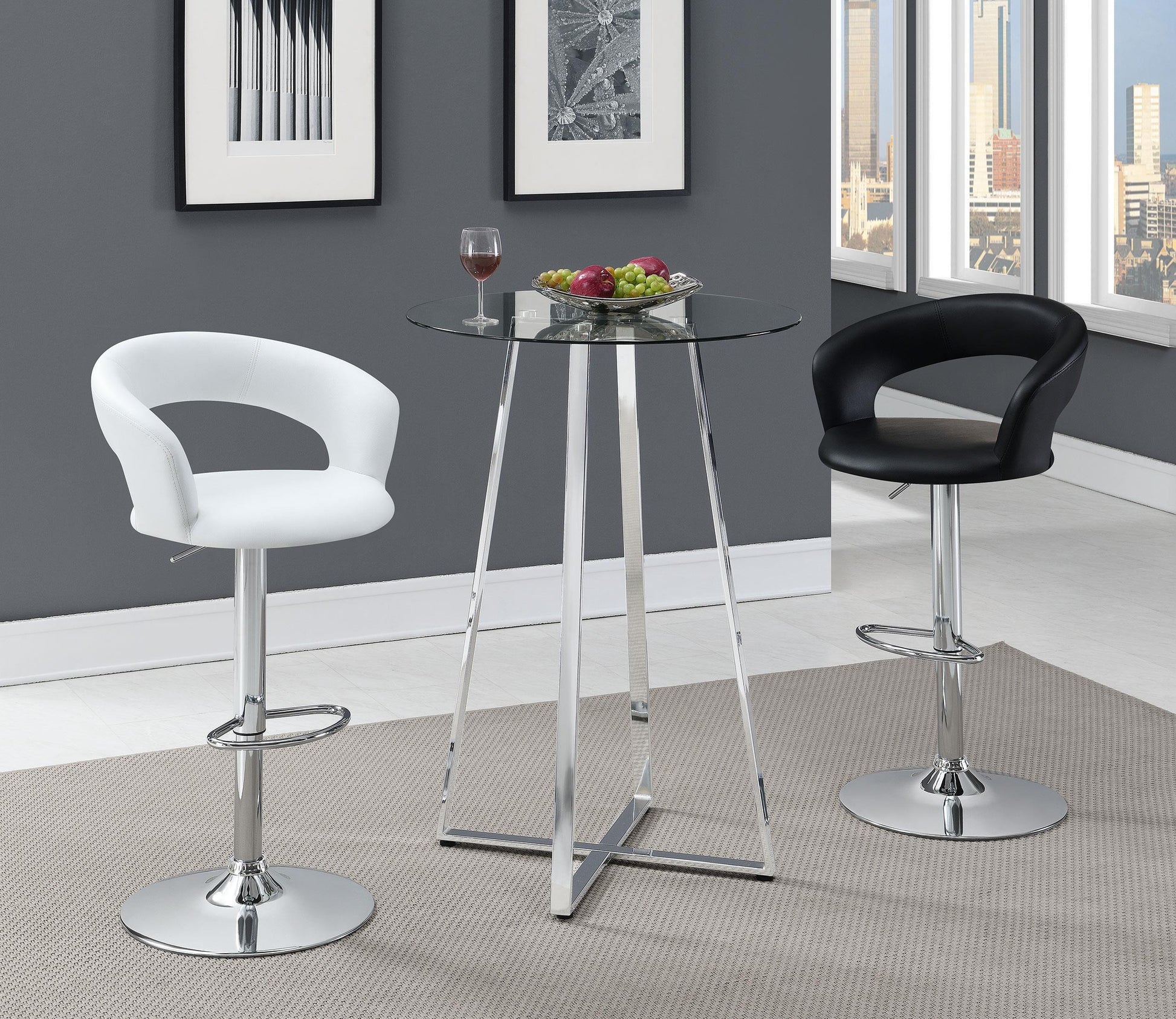 Meet the Zanella Round 30-inch Glass Top Bistro Bar Table in Chrome — a compact, stylish centerpiece designed for kitchens, dining nooks, and home bars. It blends a clear glass top with a gleaming chrome base to deliver a contemporary look that fits modern interiors. Ideal for apartment living and casual entertaining, it offers a versatile surface that balances functionality with chic style.