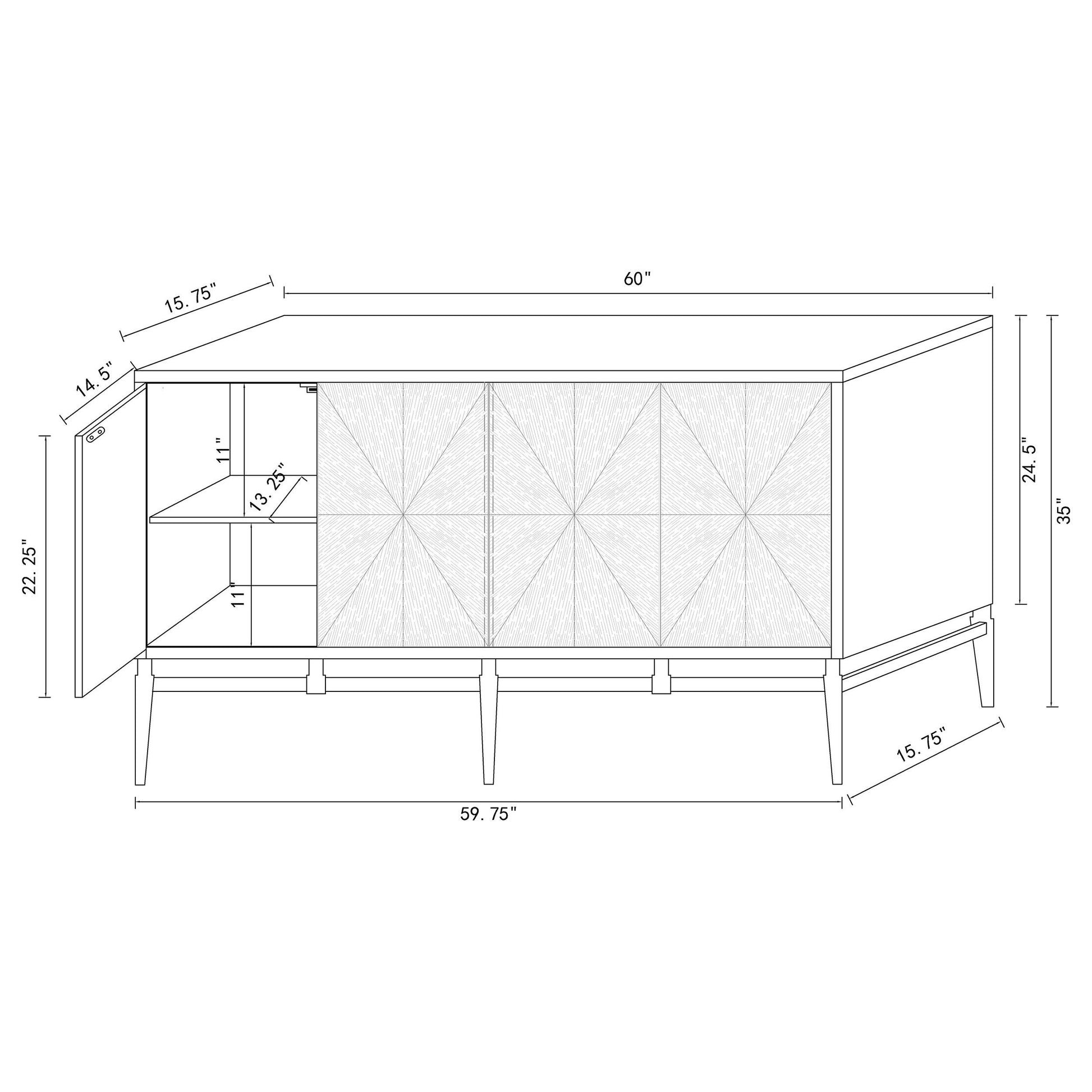 Meet the Zira 4-door Wood Parquet Storage Accent Cabinet in Brown—a versatile storage solution that blends classic parquet detailing with practical concealed storage. Ideal for living rooms, dining areas, entryways, or bedrooms, this cabinet adds warmth and organization to any space.