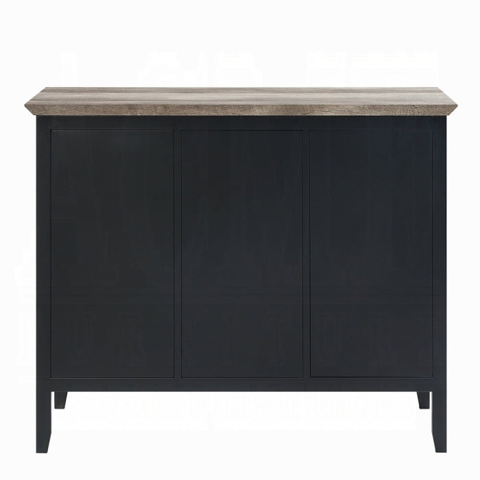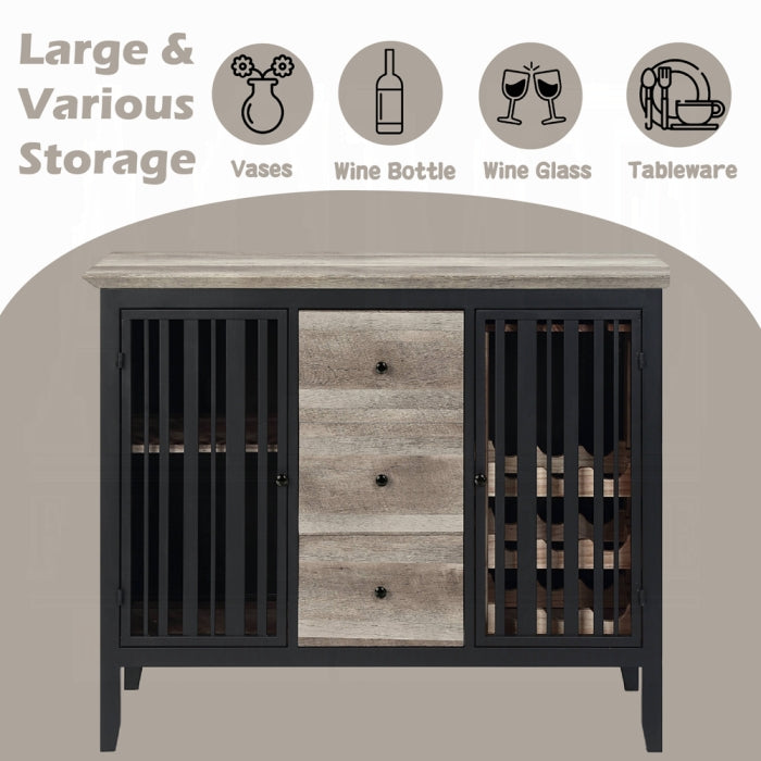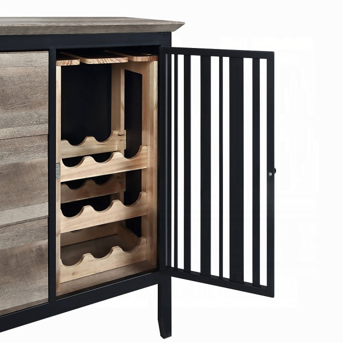 The Zudora server cabinet helps you maximize space while keeping essentials neatly contained and out of sight. Its two black slatted doors open to reveal a stemware holder, bottle storage, and ample enclosed storage, delivering practical organization for any living or entertaining space.